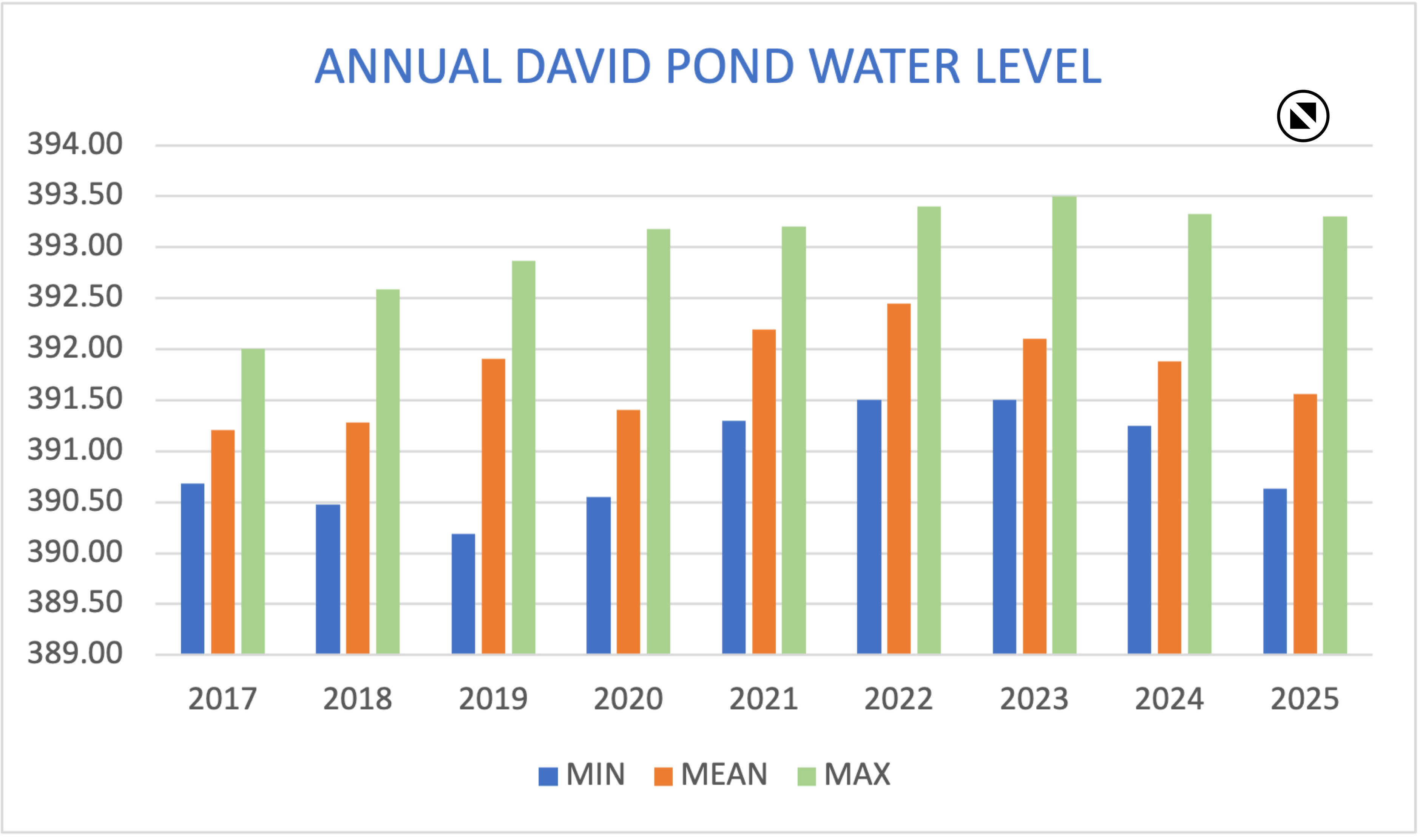 A log of water level on David Pond